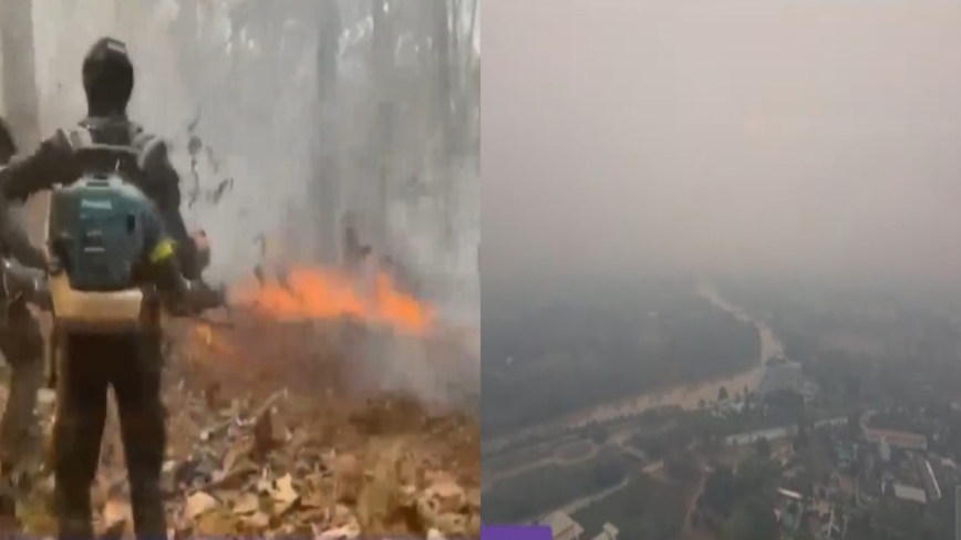 泰国北部清迈府的森林大火持续蔓延,许多火灾发生在高海拔山区,警消徒步难以抵达,需仰赖空中支援才能扑灭。这场大范围野火被认为是导致清迈等地PM2.5空污加剧的主因。