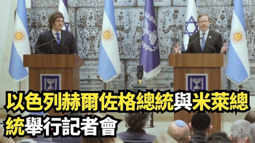 【新唐人北京时间2026年04月19日讯】美东4月20日,耶路撒冷,以色列总统艾萨克·赫尔佐格(Isaac Herzog )与阿根廷总统哈维尔·米莱(Javier Millei)举行联合记者会。新唐人、大纪元进行网络重播,即时翻译字幕。