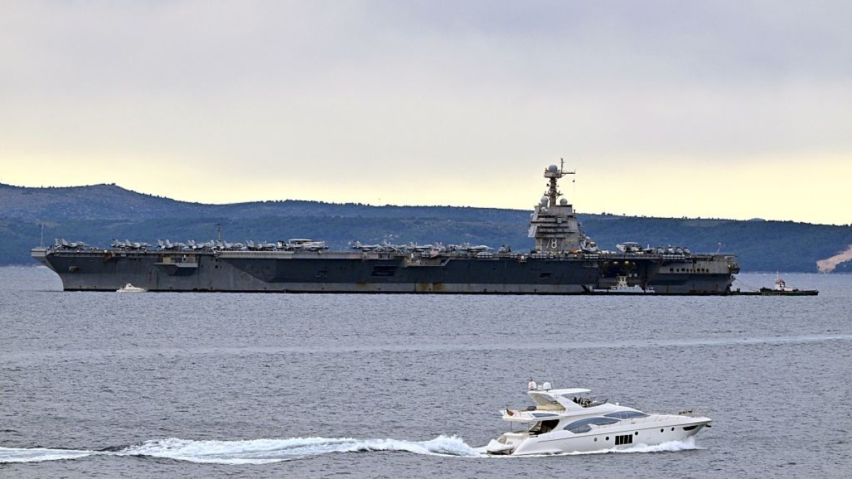 3月中旬,“福特号”航母由于洗衣房起火,停靠在克罗地亚港口停靠维修。