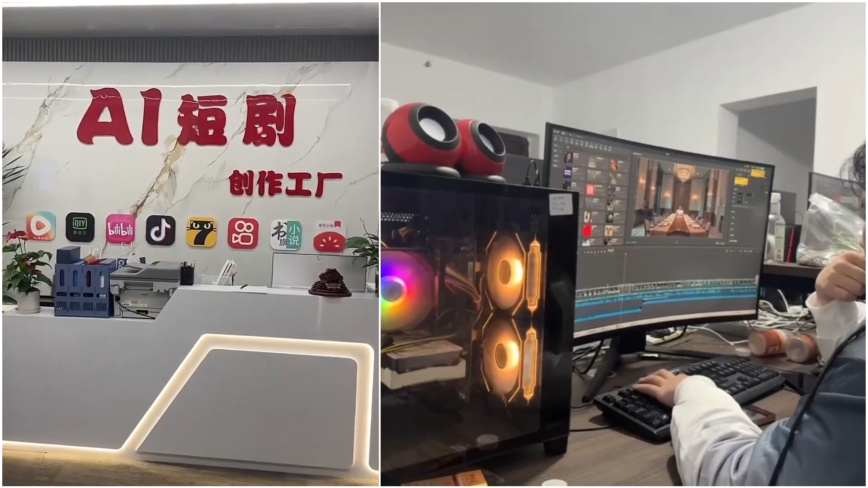 AI短剧公司老板小刘(化名)表示,他的公司承制小说平台改编的剧本,他拿流量分成的40%,公司有100多名员工,一天能产出二三十部短剧,一直在亏损。
