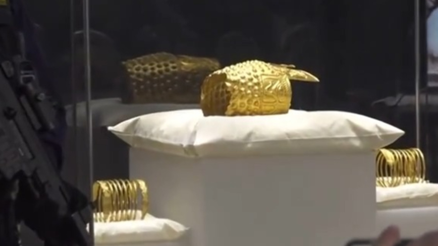 【新唐人北京时间2026年04月23日讯】近日,在重兵保卫之下,一顶金光闪闪的黄金头盔与两枚工艺精湛的黄金手镯,跨越千年时光,再次震撼大众的视线。这三件价值连城的国宝,正是罗马尼亚引以为傲的“达契亚文明”的见证。