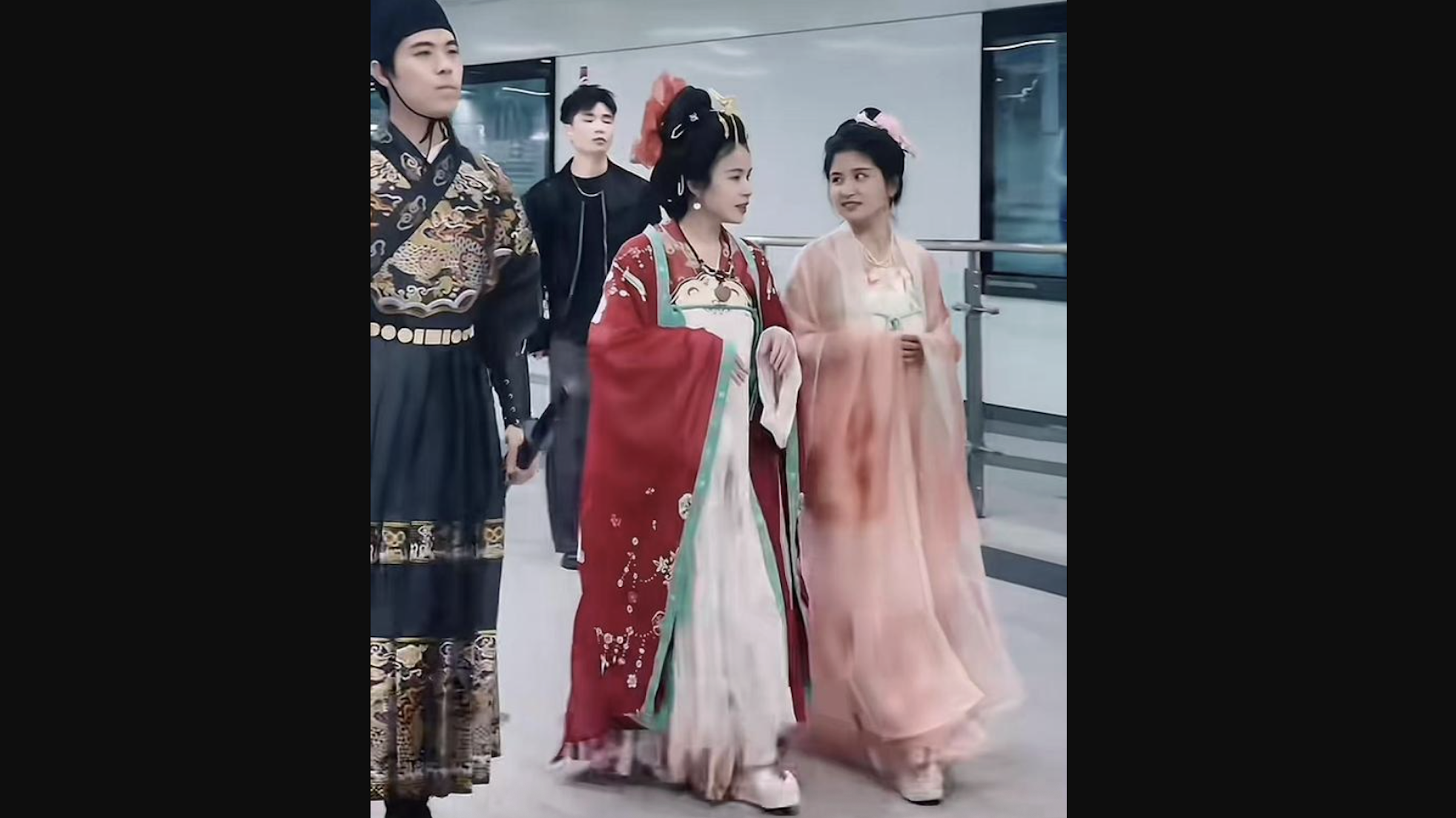其同伴也在旁边录制视频表示不满,说“这是传统服饰,我们是中国人又不是日本人,为什么不能乘坐地铁?”