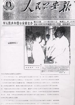 1993年9月21日,公安部主办的《人民公安报》,专题报导《法轮功为见义勇为先进分子提供康复治疗》,并称“经调治后普遍收到了非常好的效果”。