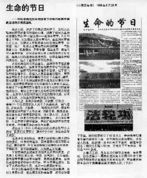 1998年8月28日,《中国青年报》以“生命的节日”为题,报导刘菊仙、王效盐等法轮功学员因修炼而身体康复的奇迹。(正见网)