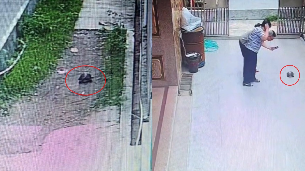 当事人谢女士表示,这片水塘原本杂草丛生,生活着鲫鱼、乌龟等小动物,公公平日里常会投放饲料喂食。如今水塘被填平改造,小乌龟无家可归,竟凭着记忆找上门来。翻看监控后,一家人都倍感震惊。