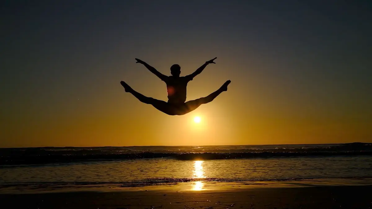 神韵舞蹈演员包明宇(Lucas Browde)在2025年神韵全球巡回演出期间,于澳洲海滩起舞。(Paulio Shakespeare/NTD)