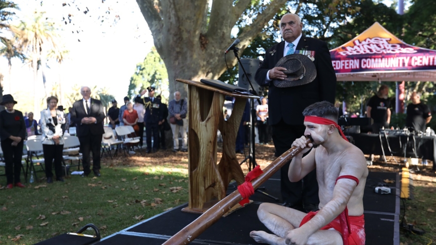 周六,澳大利亚悉尼伊丽莎白街,两边挤满了观看的民众。数千名陆、海、空三军退役老兵、现役军人,以及盟军部队,整齐地走在伊丽莎白街头,纪念“澳新军团日”。