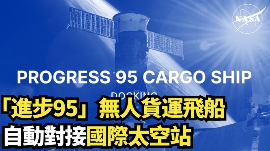 【新唐人北京时间2026年04月28日讯】美东4月27日晚7:15,“进步95”无人货运飞船自动对接国际太空站。新唐人、大纪元进行网络直播,即时翻译字幕。