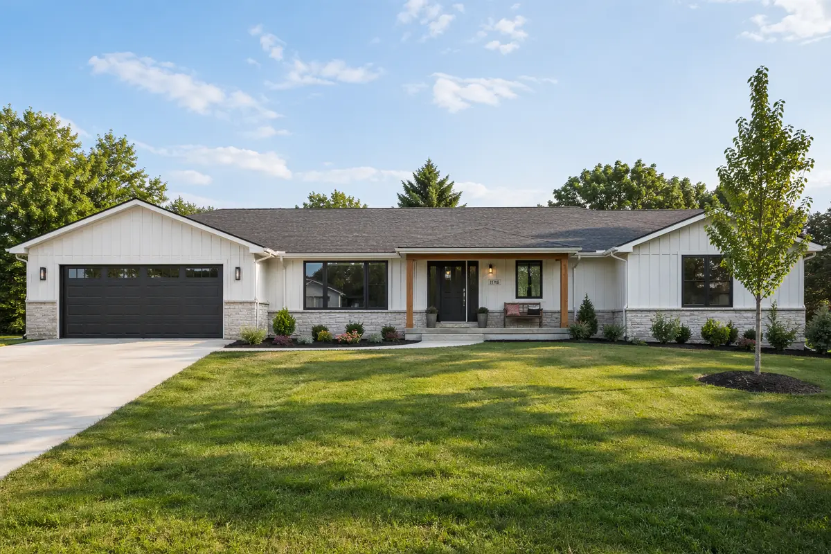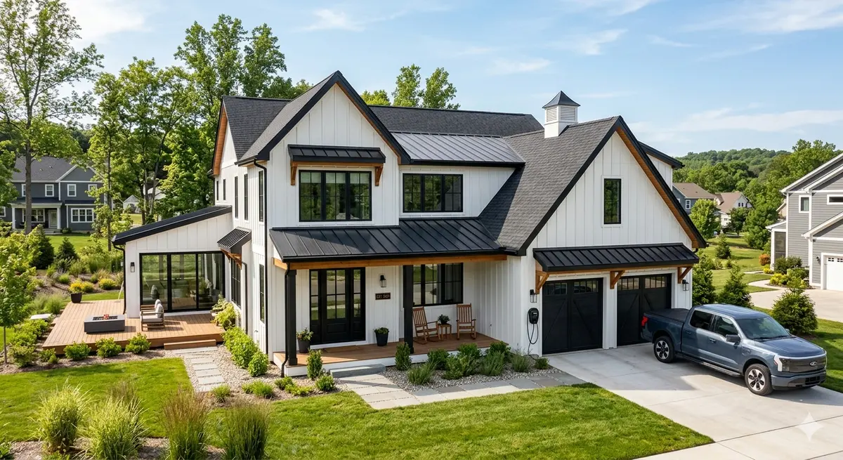 第二名是现代农场风(Modern Farmhouse),经典的白墙黑窗。虽然热度较前几年微降,但在美国中西部和南部依然是主流。