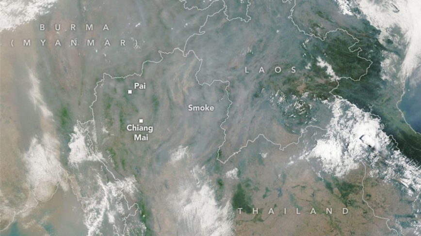 【新唐人北京时间2026年04月28日讯】美国国家航空航天局(NASA)的卫星日前拍到泰国北部城市清迈被烟雾笼罩的图片。这是该国的第二大城市,坐落在北部高地的狭窄山谷之中,素以悠久的历史与其周围山脉的壮丽全景而闻名,但现在晴朗的天空和美丽的山景越来越难见到,也使旅游业受到影响。