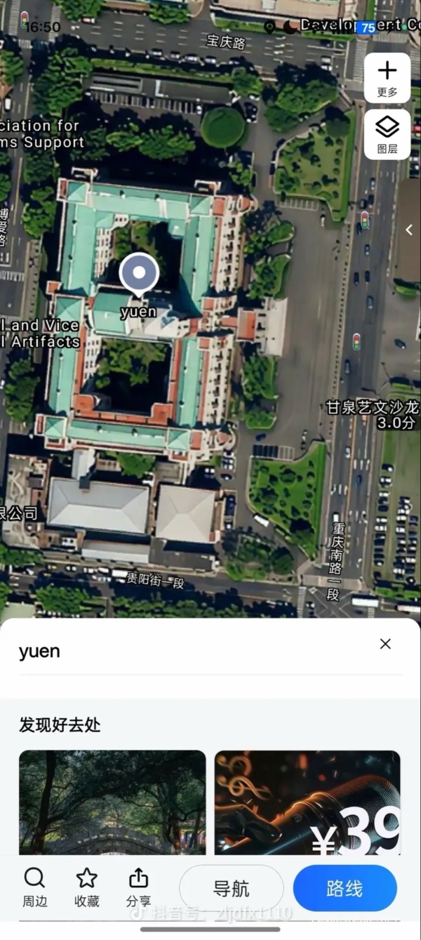 新唐人记者直接到高德的台北市地图上去寻找,总统府所在地的名称是带医疗标志的“院校”。