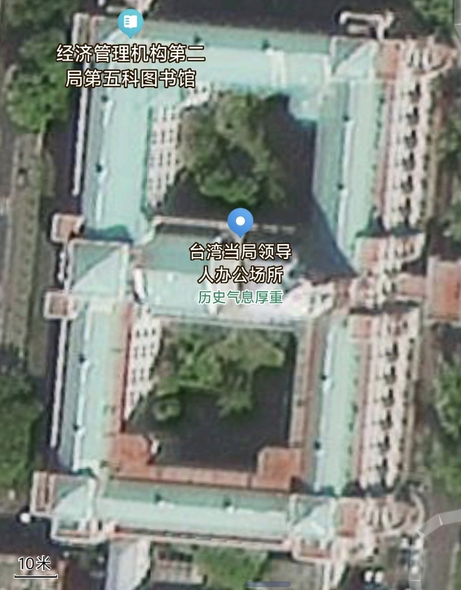 还有网民贴出高德地图以前给总统府起的各种奇葩的名称,包括“yuen”、“公务人员基础训练”等。其中最“靠谱”的一个可能是“台湾当局领导人办公场所”。
