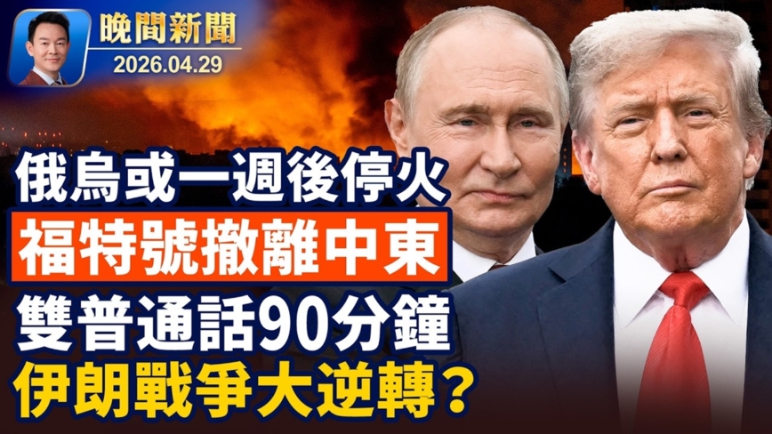 【新唐人北京时间2026年04月30日讯】川普:普京愿接管伊朗浓缩铀 俄乌战争迎来转机;美福特号将撤离中东!伊朗战局惊现大逆转?马斯克起诉OpenAI:此案关乎美国慈善体系的根基;密苏里遭遇巨型冰雹如灾难片 车主吓到不敢下车; 校车司机突然昏迷 几名学生挺身而出救下全车性命。