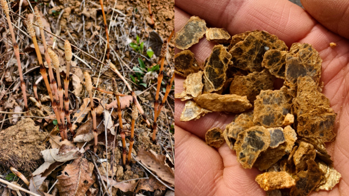 孙先生还发现,这里的岩石夹杂着云母片,而且周围5公里范围内,几乎长满了问荆草。